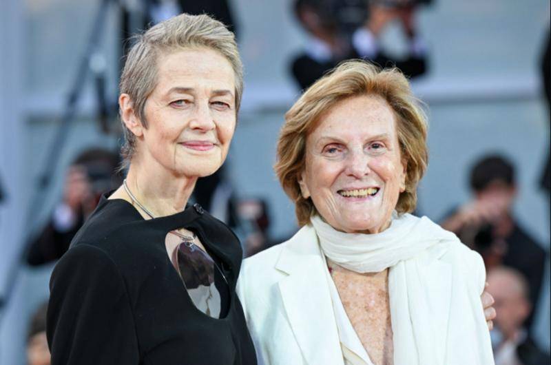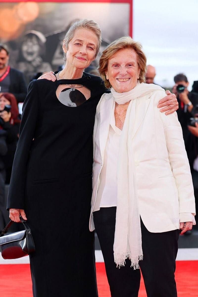 获颁终身成就金狮奖的意大利女导演莉莉安娜·卡瓦尼,与英国女演员夏洛特·兰普林携手走过红毯。
