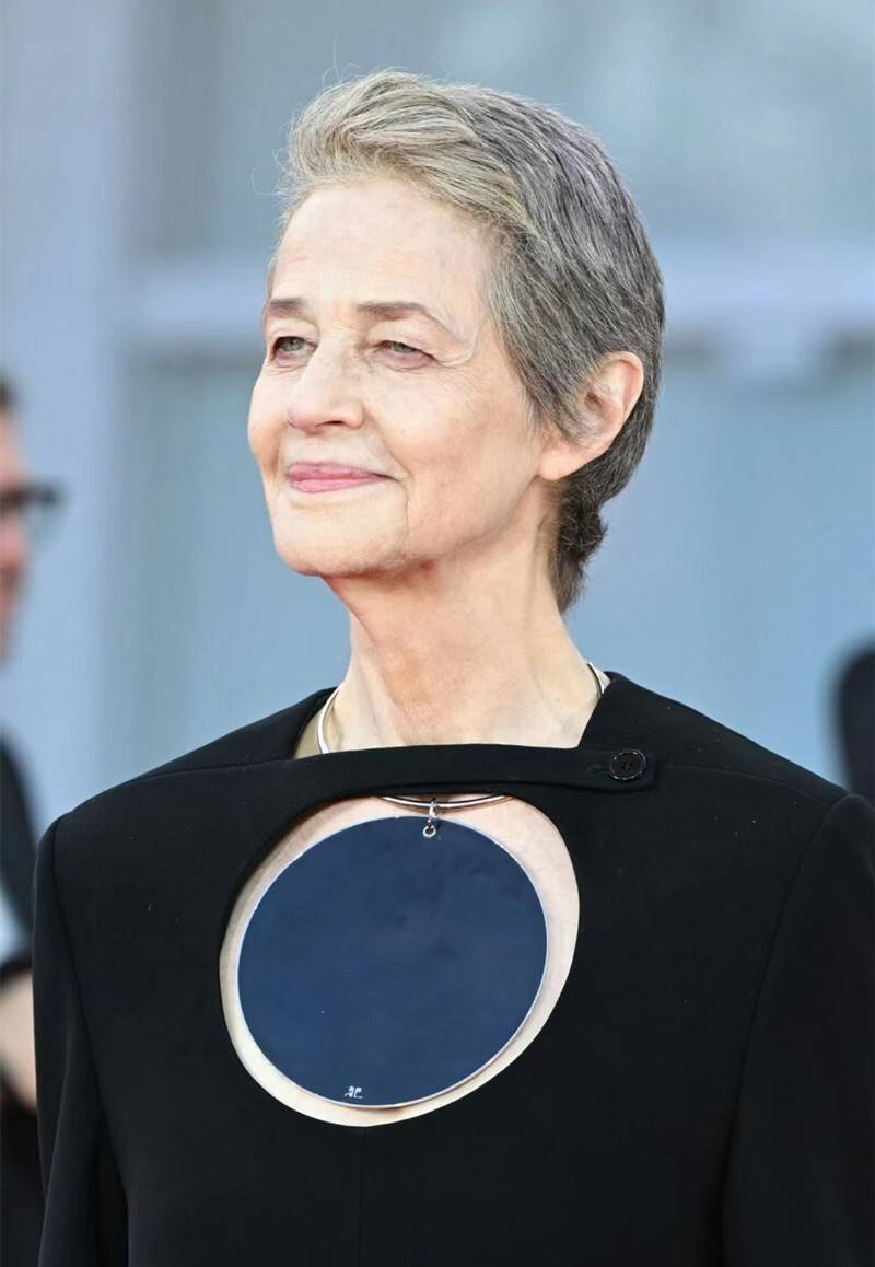 尤其是一头银色短发的夏洛特·兰普林,虽然看不太懂她颈上项圈的时尚感,但那份女王般的优雅贵气里,依旧可见她昔日“英伦玫瑰”的风华绝代。