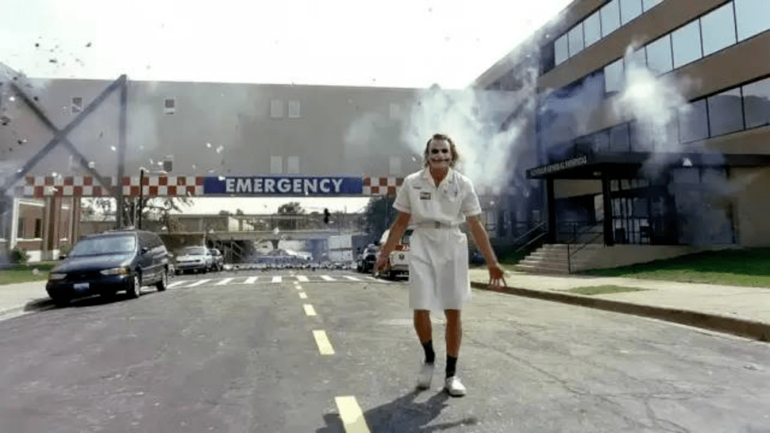 从小丑的身上,我们能看到诺兰对社会议题的反思。小丑追求无政府主义的理念,憎恨一切精英与统治阶级,想通过各种手段消灭政府和权威,但他肆无忌惮地虐杀的行为,又恰恰是违背了无政府主义的理念。