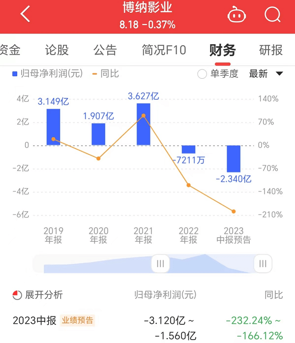 去年,博纳影业在A股上市,首年业绩就暴雷,净利润亏损7200万元,今年上半年也没能扭转颓势。