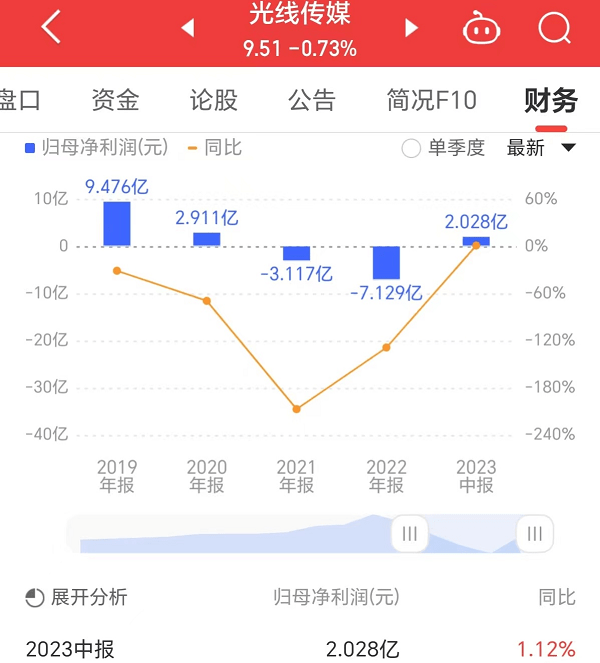 没有影院业务的光线传媒这些年经营最稳健,今年上半年净利润2.03亿元,同比增长1.12%。其中,扣非净利润1.89亿元,同比增长30%。报告期内,光线上映了《深海》《满江红》《交换人生》《中国乒乓之绝地反击》《这么多年》等电影。