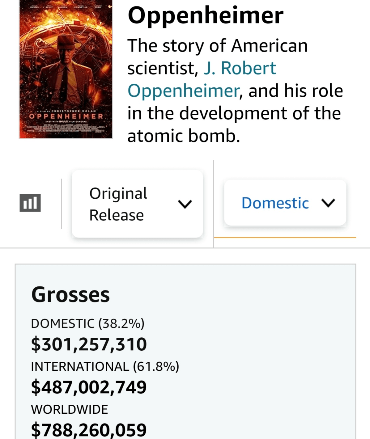 在其他市场,《奥本海默》已经证明了其吸金能力,北美票房超过3亿美元,海外票房4.87亿美元,全球票房累计突破了7.88亿美元。