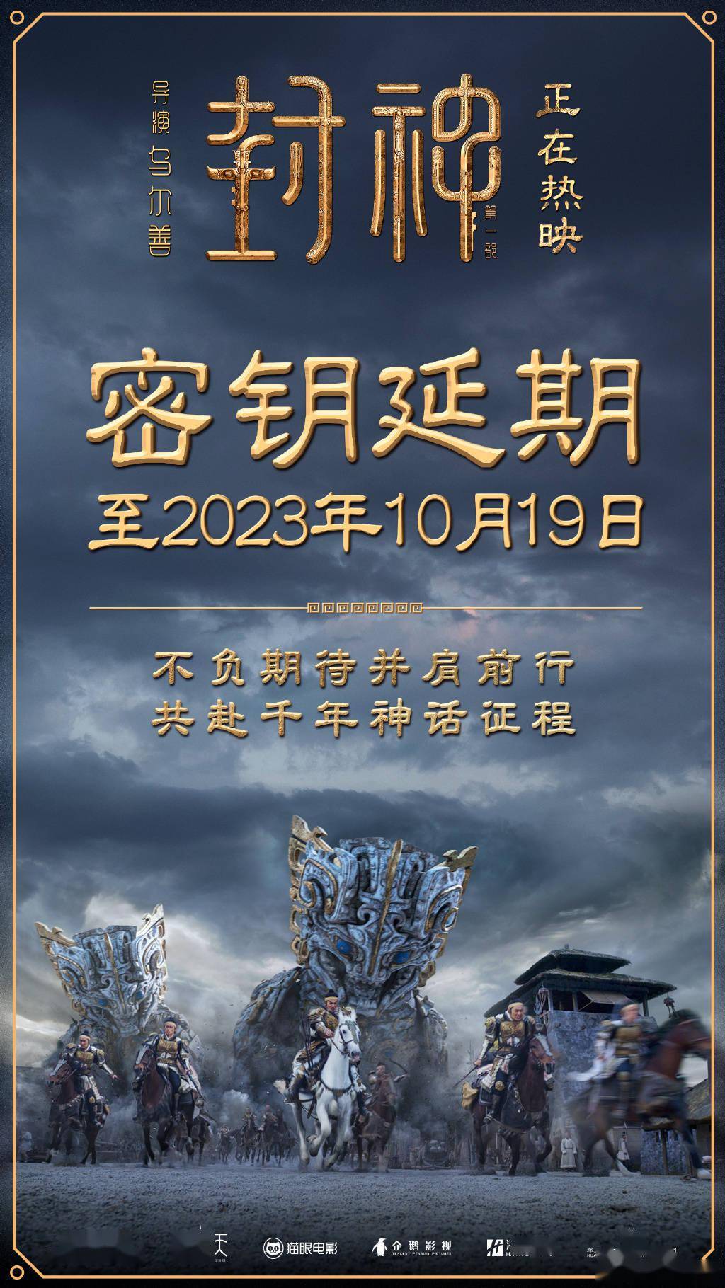 原标题:《封神第一部》密钥二次延期 延长上映至10月19日