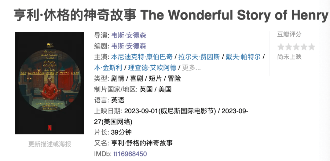 刚离开戛纳,又前往威尼斯,不过呢,这只是韦斯·安德森的一部短片,片长不到40分钟,是去威尼斯展映的,9月末也会登陆网飞。