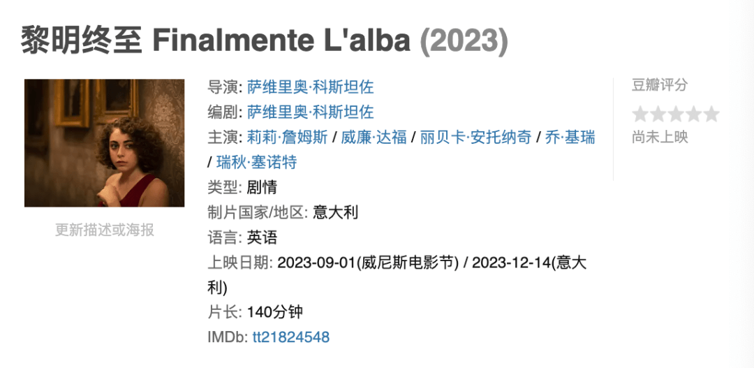 《质数的孤独》《我的天才女友》系列导演萨维里奥·科斯坦佐的新作,邀请的也都是大家很熟悉的演员,比如莉莉·詹姆斯、威廉·达福等。