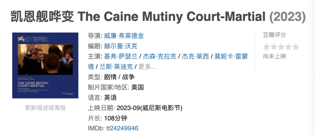 《驱魔人》导演威廉·弗莱德金前几天刚刚去世,这部《凯恩舰哗变》也成为他的遗作。