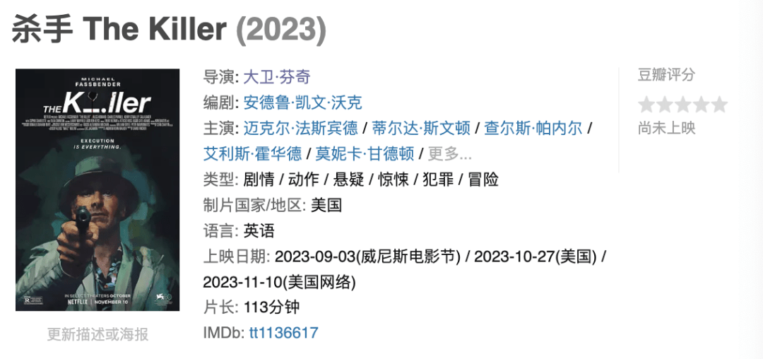 改编自亚历克西斯·诺伦特的同名小说,讲述在一场致命的侥幸逃生事件后,一名杀手(迈克尔·法斯宾德 Michael Fassbender 饰)面临并非针对个人的国际追捕,开始与他的雇主和自己作斗争。