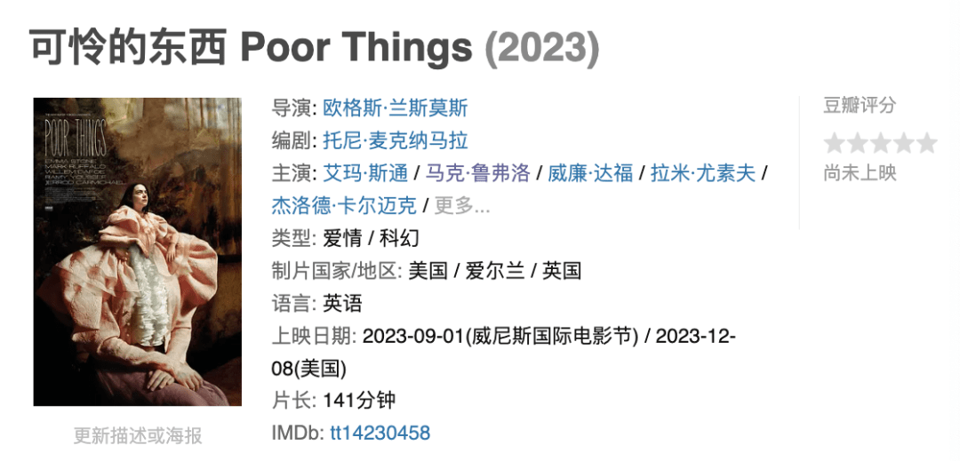 这是《龙虾》《宠儿》导演欧格斯·兰斯莫斯的新作,艾玛·斯通、马克·鲁弗洛、威廉·达福等共同出演。