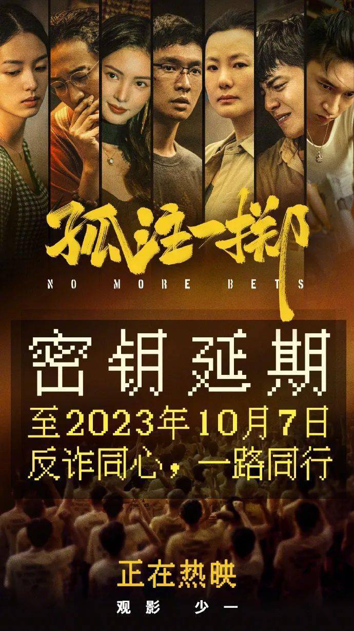8月28日,据猫眼专业版数据,由宁浩监制、申奥导演,张艺兴、金晨、咏梅、王传君领衔主演的反诈题材电影《孤注一掷》总票房突破34亿,超《唐人街探案2》票房成绩,进入中国影史电影票房榜前十三。此外,影片宣布密钥延期将延长上映至10月7日。