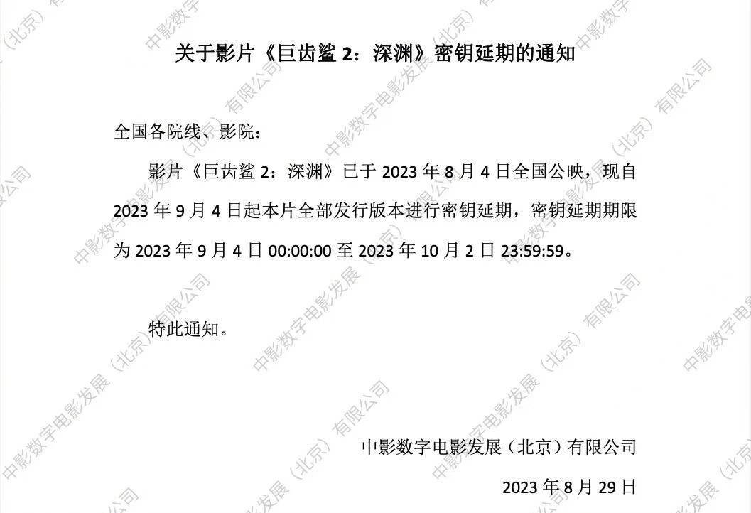原标题:电影《巨齿鲨2:深渊》延长上映至10月2日国庆档 上映第26天累计票房8.16亿