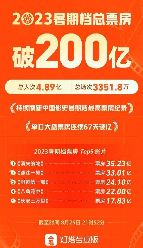 原标题:2023暑期档总票房破200亿 《消失的她》暂列第一