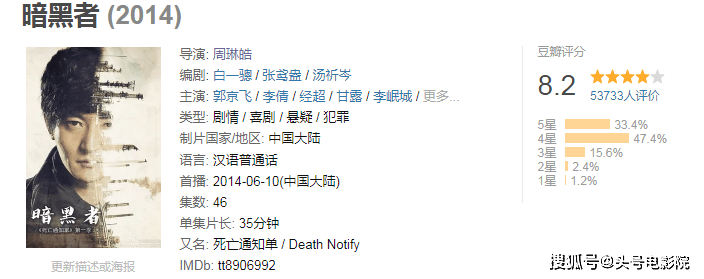 这个小说早在2014年就改编拍过剧集《暗黑者》,口碑还不错,豆瓣8.2分,当年是郭京飞主演。