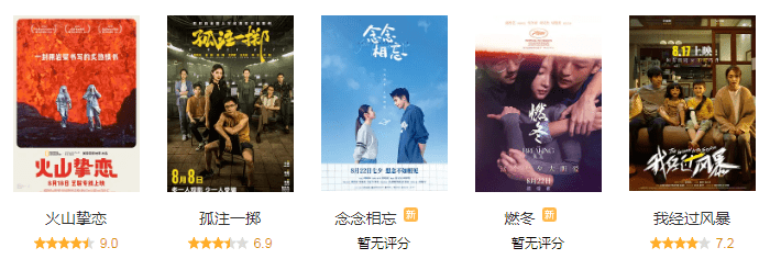 在七夕节,还有多部爱情类影片上映,包括周冬雨、刘昊然的《燃冬》,刘浩存、宋威龙的《念念相忘》,台湾地区爱情片《最遗憾是错过你》等。