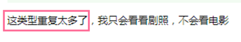 “这类型重复太多了,我只会看看剧照,不会看电影”。