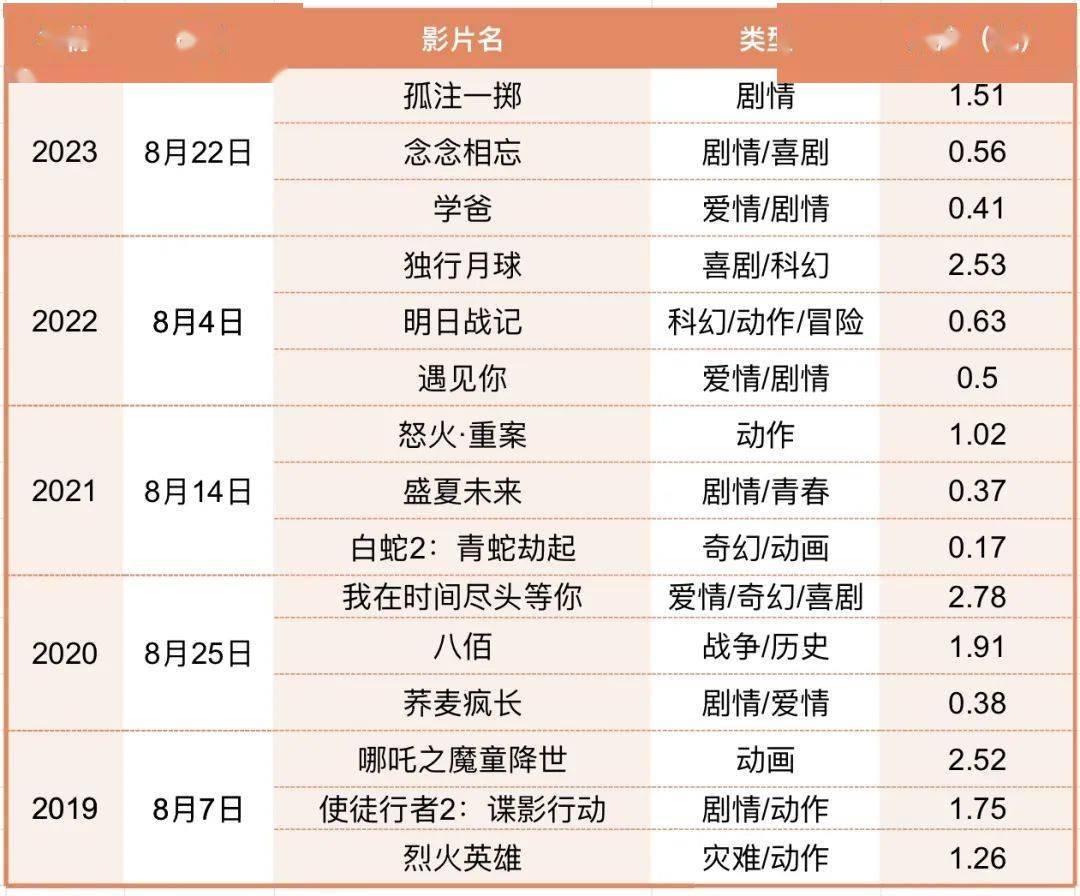 近五年七夕档排片前三的影片信息