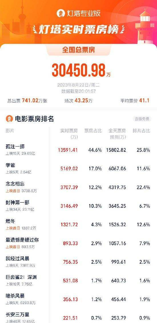 原标题:2023年七夕档电影票房破3亿 《孤注一掷》领跑