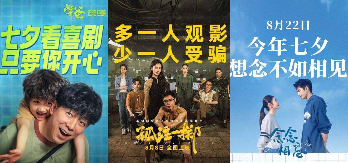原标题:七夕档总票房突破2亿 《孤注一掷》《学爸》前二