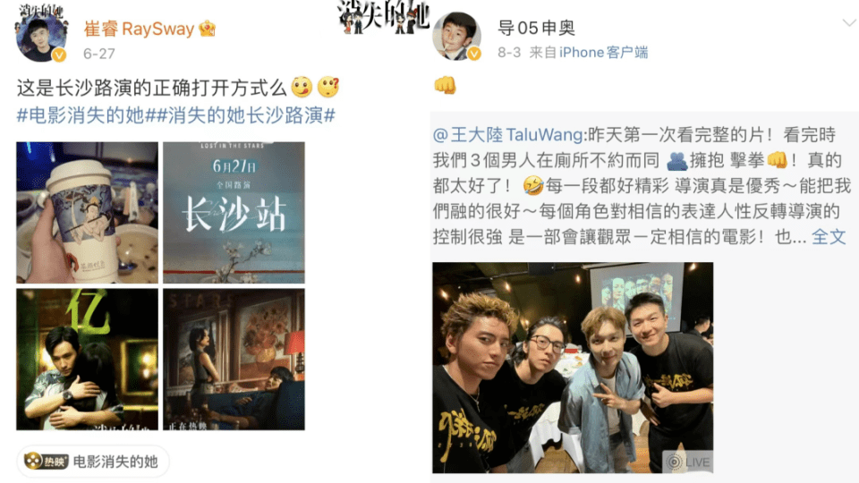 《热烈》总制片人陈祉希 《消失的她》总策划李晔 在微博参与电影宣发