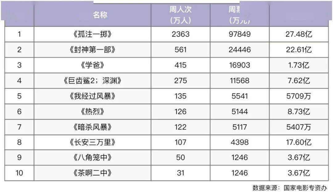 《封神第一部》上周五遭受新片冲击,周五的票房与周四持平,好在周六环比周五大涨80%,涨幅远高于其他真人电影。该片上映31天,累计票房突破22亿元,升至暑期档票房季军。电影8月14日第一轮路演结束,导演乌尔善也表示会迅速开始第二轮的路演,路演将一直持续到密钥结束。