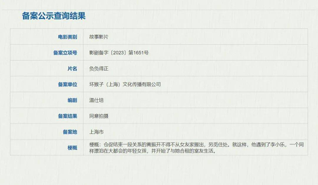 据国家电影局2023年7月上全国电影剧本(梗概)备案、立项公示的通知,电影《负负得正》立项备案,影片由温仕培担任编剧、导演。影片讲述了仓促结束一段关系的黄振开从女友家搬出,遇到了一个同样漂泊在大都会的年轻女孩李小乐,并开始了合租生活的故事。本片出品方参与出品了暑期档黑马《孤注一掷》,与《孤注一掷》导演申奥同为宁浩“爱徒”的青年导演温仕培曾以作品《热带往事》获第74届戛纳电影节金摄影机奖提名。