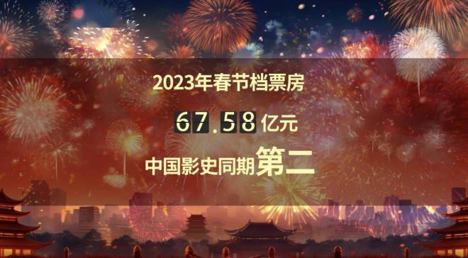 春节档票房位于中国影史同档期第二。同时春节档也诞生出多部年度高票房的影片,例如《满江红》《流浪地球2》《熊出没:伴我“熊芯”》,三部影片合计票房100.68亿,占据400亿票房的四分之一。
