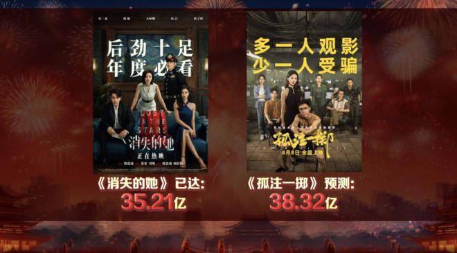 2是指的是有两影片首映当日票房破亿。《消失的她》首日1.59亿;《孤注一掷》首日1.85亿。据预测,将会有2部影片都会达到30亿票房。