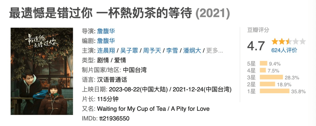 一部来自台湾地区的爱情片,看起来,也是要配合七夕档上映的。不过看豆瓣的评分,似乎也不是很理想。
