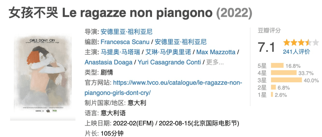 一部来自意大利的青春片,曾经入围过去年的北京国际电影节,评价也不错。