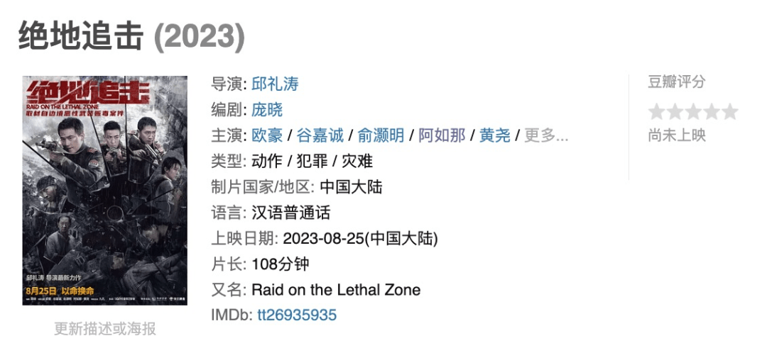邱礼涛的电影不要太多,上周是《暗杀风暴》,这周是《绝地追击》。不过那部是小说改编的悬疑罪案类。这回的则是犯罪动作片,会更打一些吧。