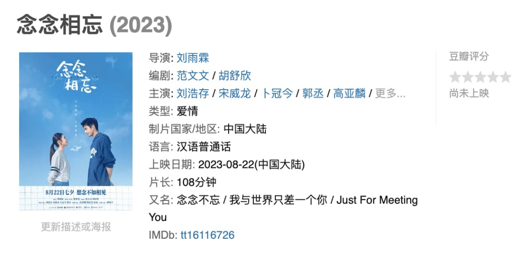 仍是面对七夕档的片子,而且这部更七夕一些,来自刘浩存、宋威龙、 卜冠今、郭丞共同出演的一部爱情片。导演则是曾执导《一句顶一万句》的刘雨霖,当然,也有不少人还知道,她是刘震云的女儿。