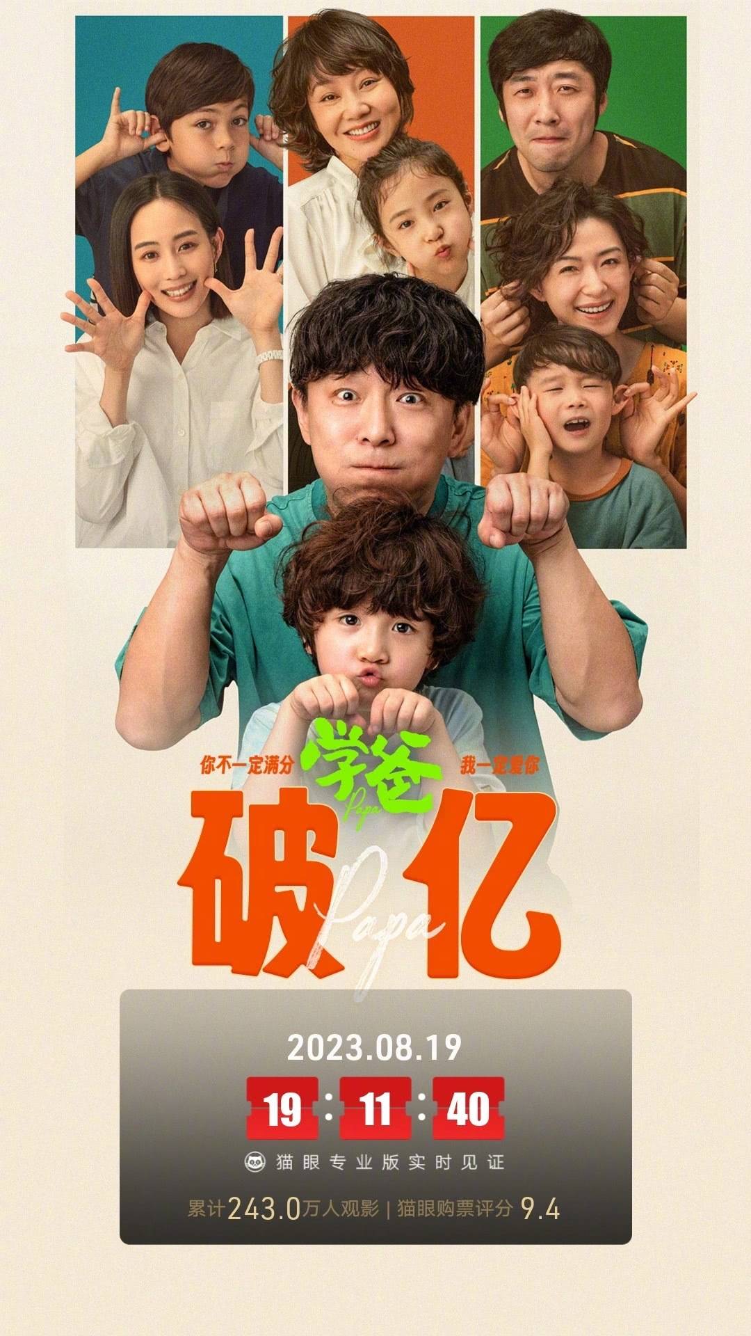 黄渤监制并主演电影《学爸》首周三天收1.69亿排名第三。
