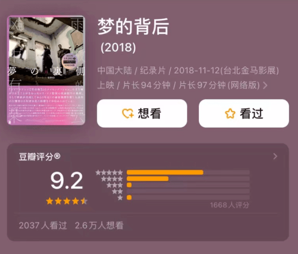 观众们会给《梦的背后》打高分,源于娄烨在公众领域的稀缺与神秘,也是赞同他多年作者表达的勇敢坚守。