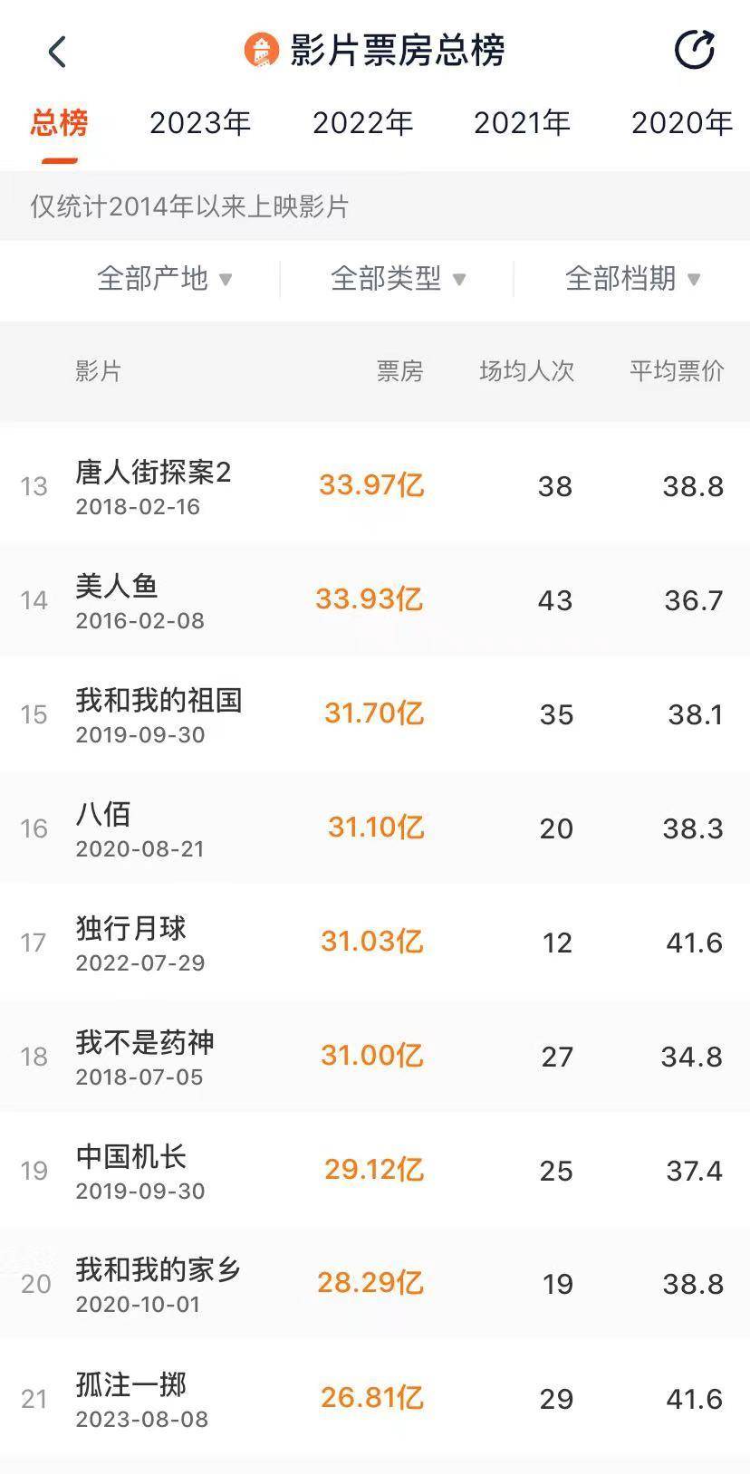 如果完成目标38亿或者是37亿,《孤注一掷》都有可能排名上升到国产片第十位或总票房第十一位,上40亿不太可能,如果最终是40亿,可能会在排名上取得更高的成绩。