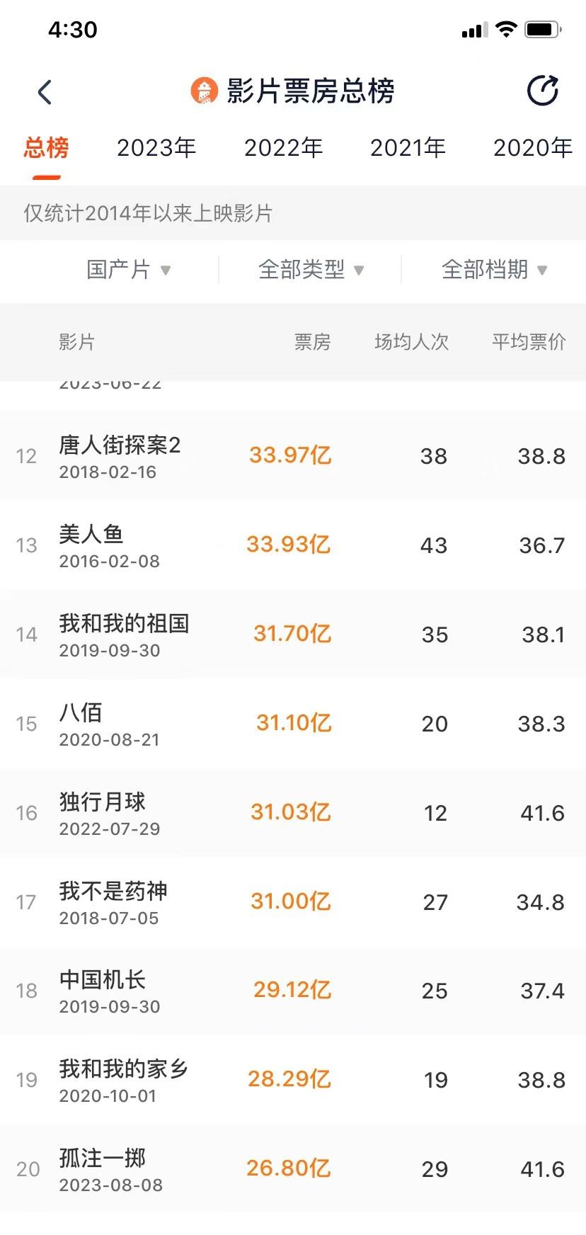 目前位于国产片票房第20位,如果完成38亿目标,票房排名可能会挤进国产片总票房前十名,目前第十名是票房高达36.51亿元的《红海行动》。