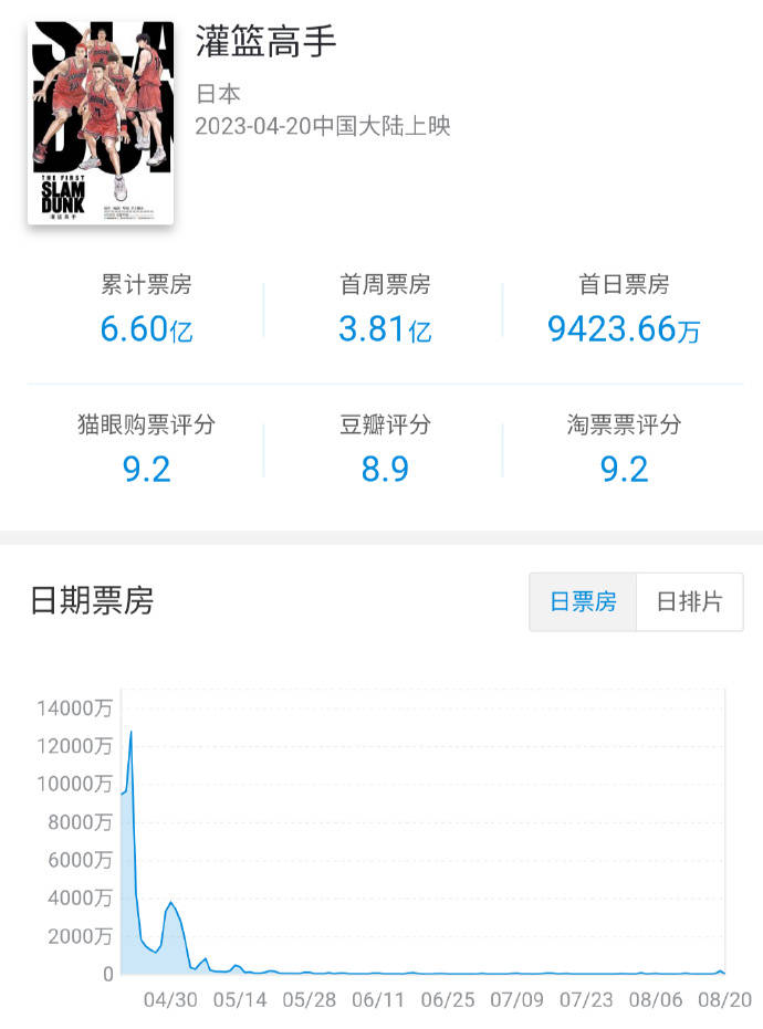 原标题:《灌篮高手》内地票房定格6.6亿 为本片最大海外票仓