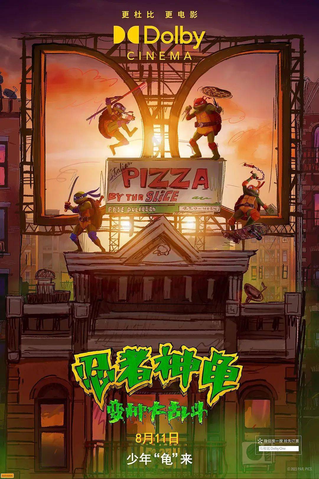 立体二维画风结合了二维与三维的优点,既可以展现出3D美学中的空间和光影,同时又可以表现出手绘动画的强烈色彩、抽象运动、创意形变等。对于画面本身,《忍者神龟》的构图和光影又返璞归真,艺术作为目标,三维作为手段,增强电影的作者性。
