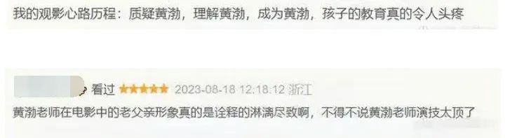 有观众认为这部影片戳到了家长痛点,表示现在孩子的教育的确让很多家长感到头疼,而黄渤塑造的父亲一角很接地气也很形象。