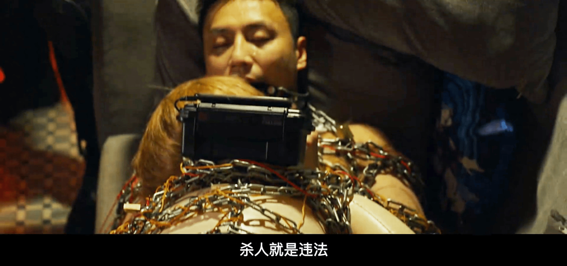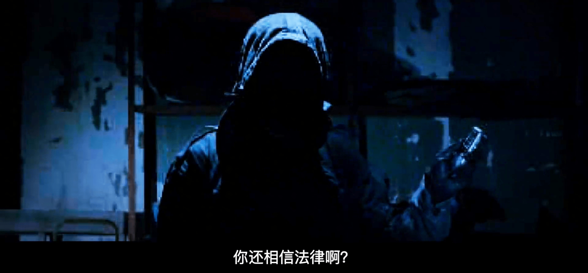 黑衣下的那张面孔,此时对观众也充满了心理威慑。