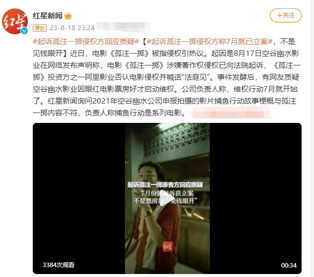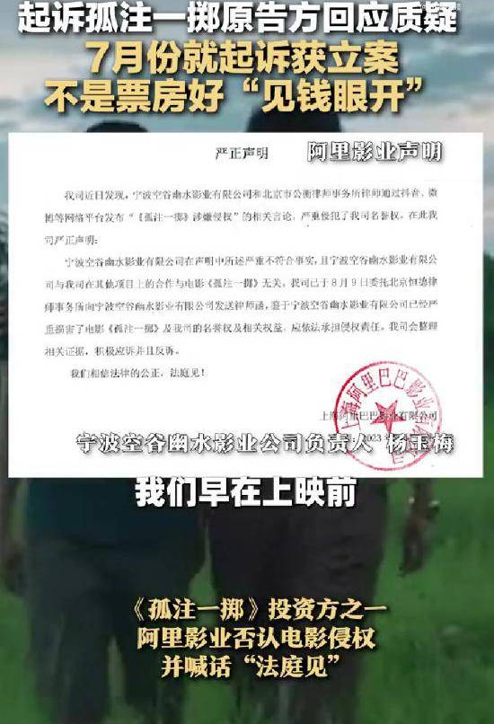 原标题:起诉《孤注一掷》侵权方回应质疑 7月份就起诉获立案