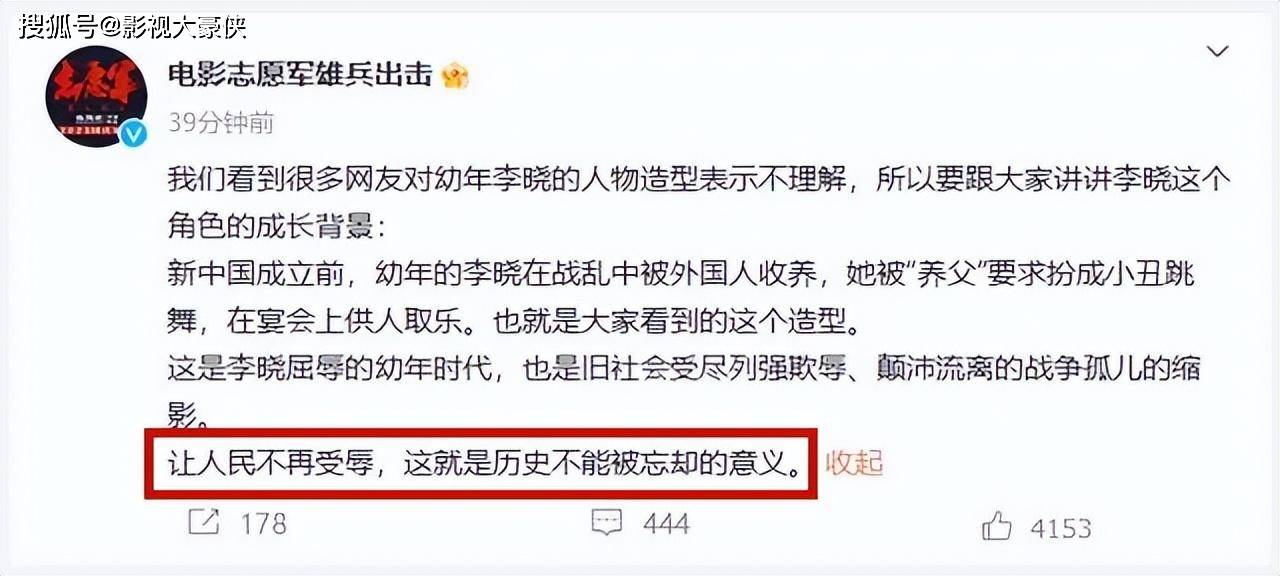 剧组的解释很鸡血,接着又发了一个更鸡血的口号——让人民不再受辱,这就是历史不能忘却的意义。