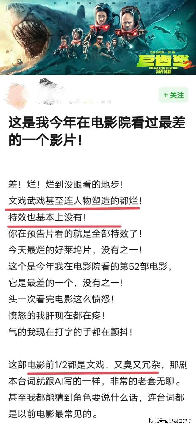 原标题:吴京光环失灵?《巨齿鲨2》剧情特效人设三宗罪,难怪被同期吊打