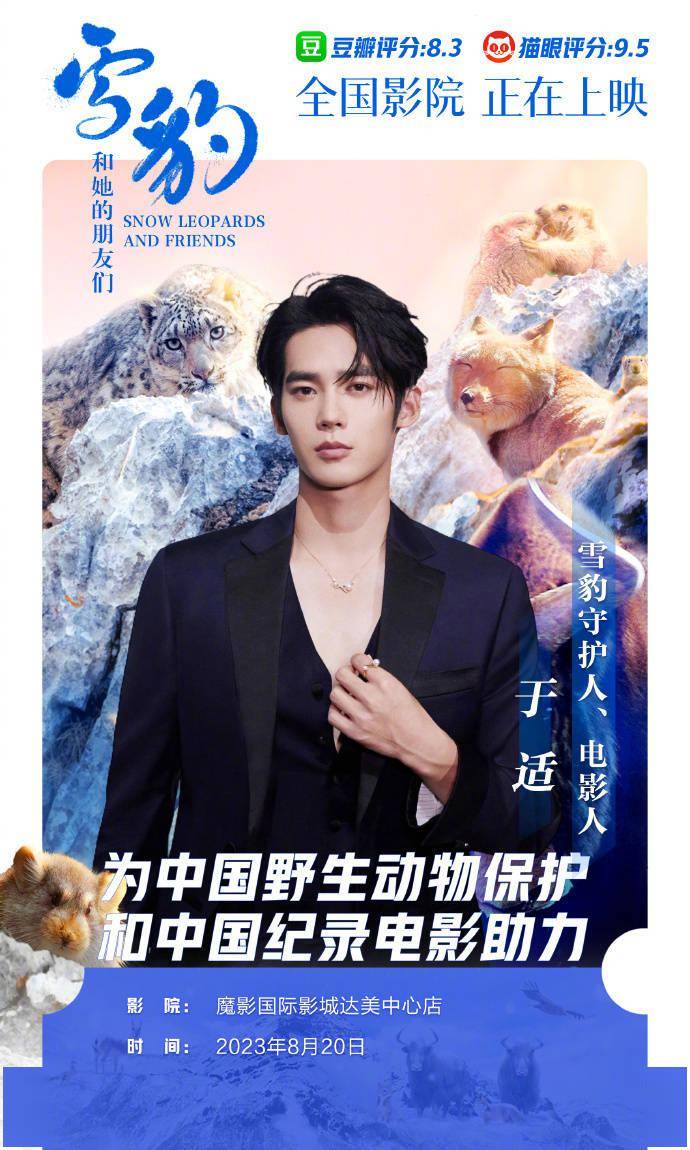 在上海国际电影节电影频道传媒大奖颁奖后台,于适曾对《雪豹和她的朋友们》导演奚志农说,拍雪豹的纪录片很难得,自己一定要支持一下!如今,他包场支持《雪豹和她的朋友们》,少年不仅言出必行,而且心中有大爱。