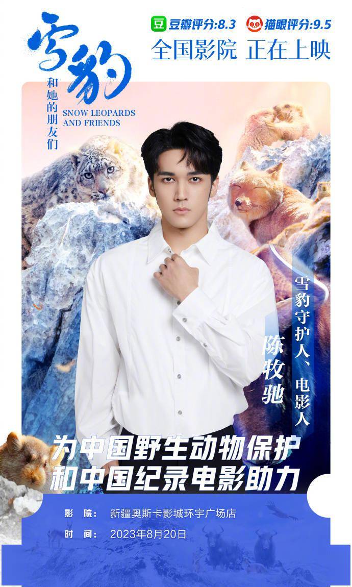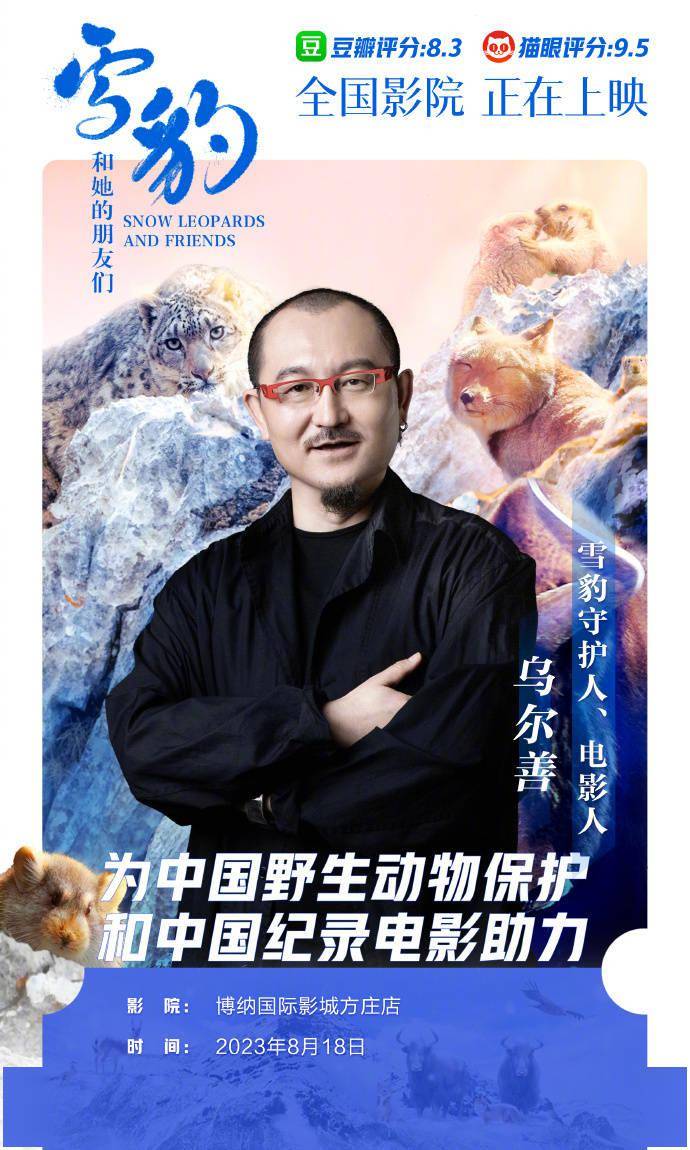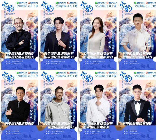 1905电影网讯雪豹的自来水 8!近日,主创、、、、、、8人化身雪豹守护人,分别在北京、新疆、西昌、广州、邯郸、吉林、厦门的8家影院包场支持电影,并邀请你一同购票观影,声援中国野生动物保护和中国纪录电影!