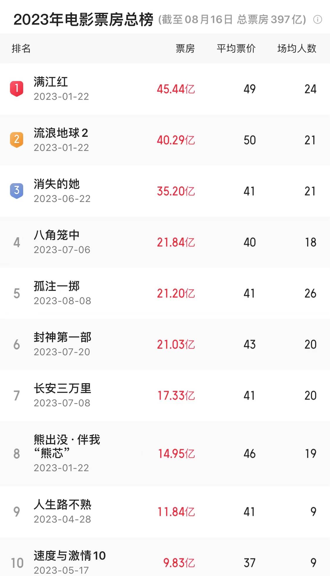 搜狐娱乐讯 据猫眼专业版数据,截至8月16日18:30,乌尔善 执导,费翔、黄渤、于适、陈牧驰、娜然等主演的电影《封神第一部》上映第28天 ,累计票房突破21亿,累计观影人次4834.2万,暂居2023年度内地电影票房榜第六位。