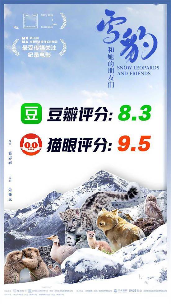 1905电影网专稿豆瓣8.3分,猫眼9.5分!纪录电影《雪豹和她的朋友们》创下了2023年暑期档国产片最高评分。