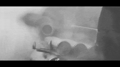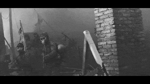 枪口特写,接上摇晃的手持镜头,也带给观众残酷的在场感。