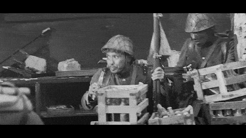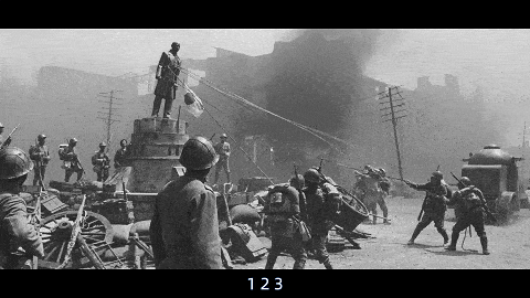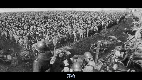 随着一声口令,机枪喷出火舌,远端的中国士兵成片倒下。