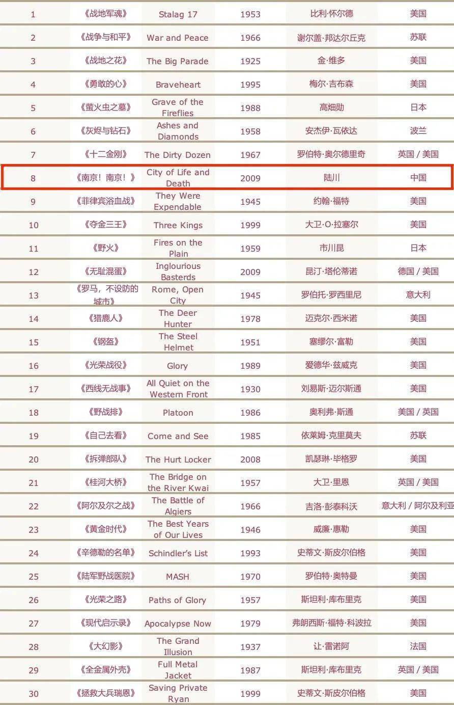 回顾完这部影片,我们也不难理解为什么《南京!南京!》能够成为国外影评人眼中的史上最佳30部战争片之一。