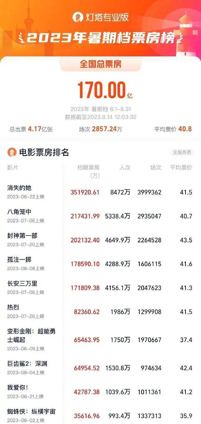 2023暑期档票房破170亿