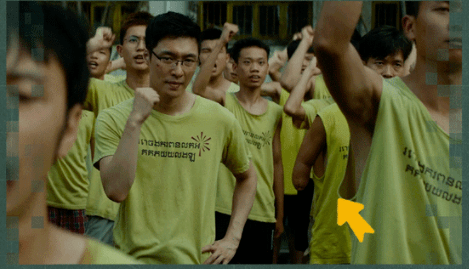 团队在喊口号打鸡血时,潘生身边站着的人手臂断了,背后站着的是一个未成年。